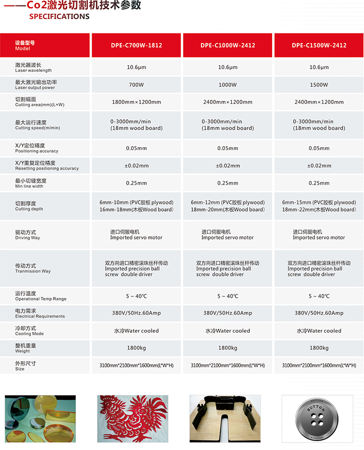 二氧化碳激光切割机广泛应用于现代工业--彩盒电子轻工等各类模切板加工;碳钢、不锈钢、铝合金等金属薄板的切割 加工;亚克力、塑胶、复合材料等各类非金属中厚板材的切割加工。