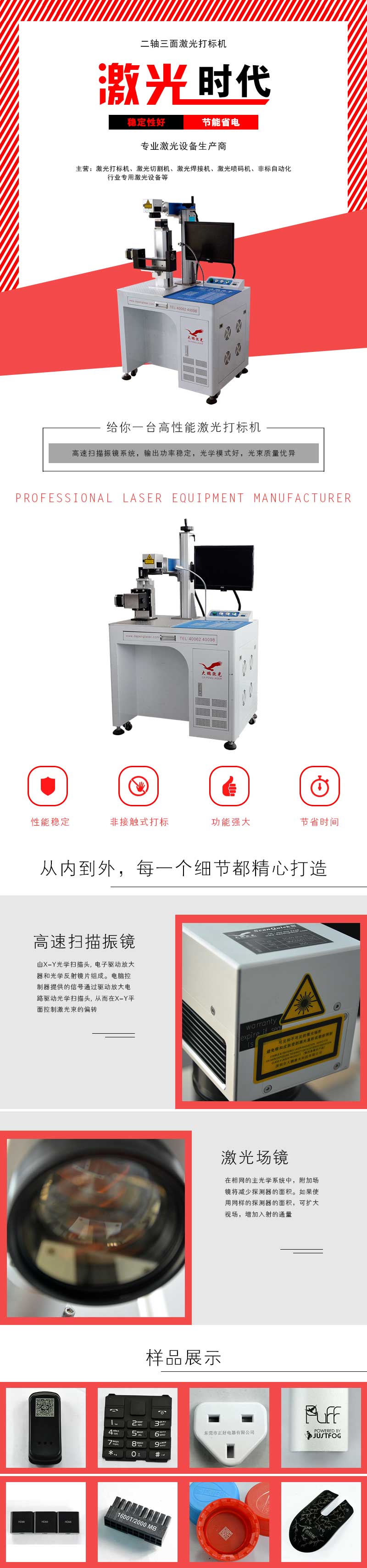 是一款专门针对手机中壳镭射打标的机型,具有自动升降二次旋转功能,雕刻手机中壳的电镀层,做到位置精确,无大小边,手机四边360°无断点的效用。