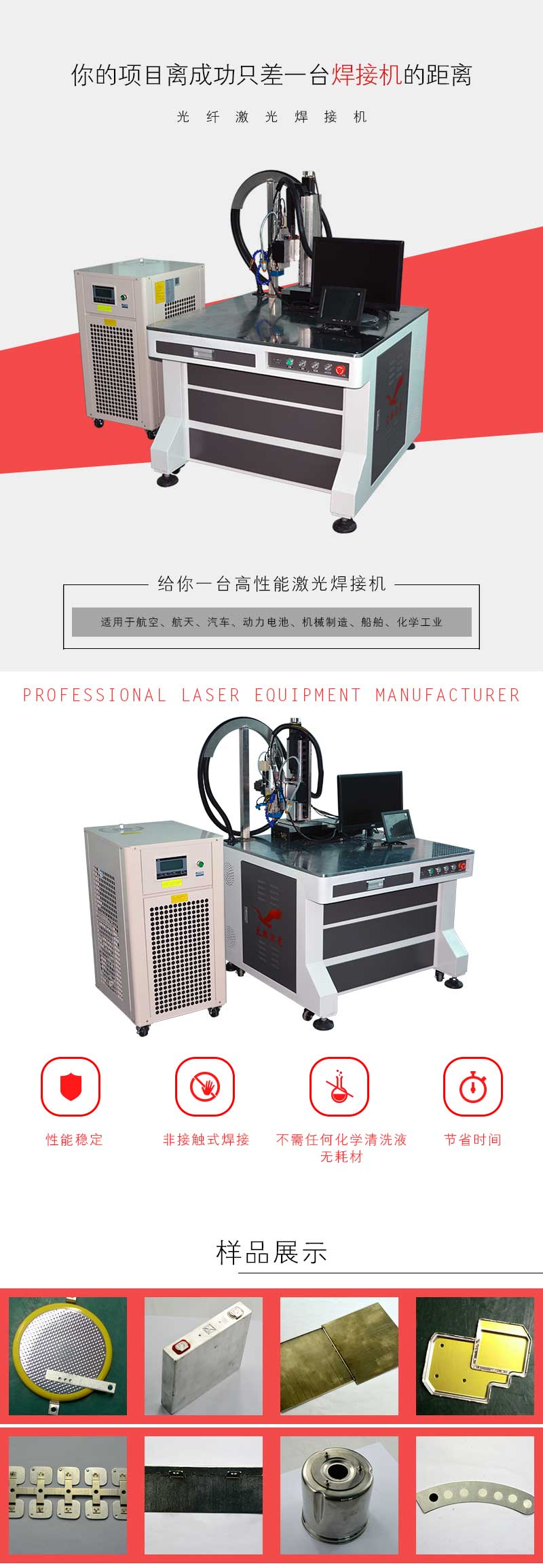 使用于汽车,机械制造,医疗器械,船舶,化学工业,航天,航空,动力电池及生活用品等行业广泛应用。